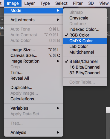 Here's how you can change your file mode from RGB to CMYK in Photoshop, simply by going to Image > Mode > CMYK color