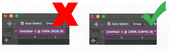 You can also check if the file you're working with is in CMYK or RGB mode in the tab at the top-left corner of the screen.