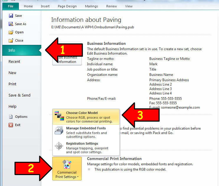 How to convert in Microsoft Publisher