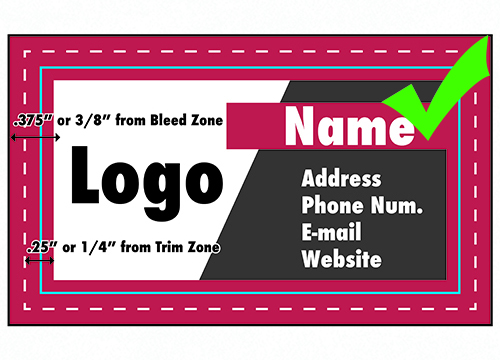 - Bleed Zone: Make sure to extend the background images or colors all the way to the edge of the black outline (0.125 in).
