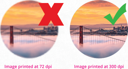 All files and images must have a minimun of 300 dpi resolution in order to have a clear and high-quality prints.
