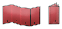 Also called fan fold or zig-zag fold, the z-fold brochure is similar to the trifold in which both of them are made by folding a sheet of paper three times, resulting in 3 outside panels and 3 inside panels. What makes them different, is that in the z-fold, one panel is folded inwards and the other one outward, in the shape of the letter Z. Since the panels don’t fold into one another, they’re all the same width.