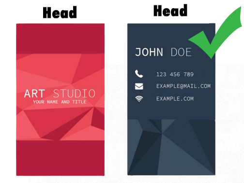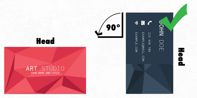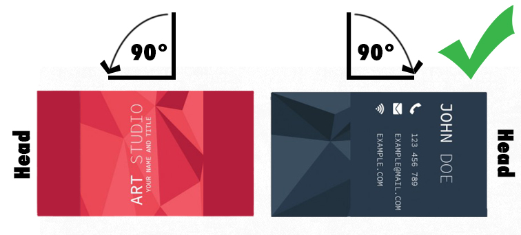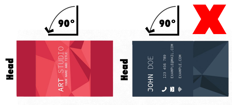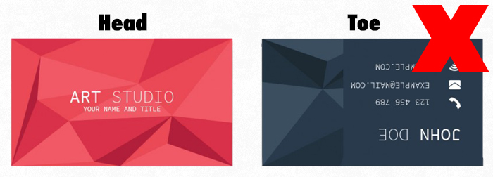 When printing double sided products, like business cards, we do what it's called head-to-head where the top of both sides is alligned.