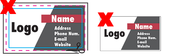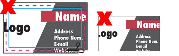 - Incorrect: The background colors do not extend to the bleed zone. This could result in white edges after trimming.