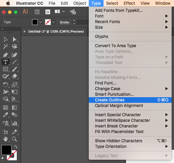 Go to Type>Create Outlines