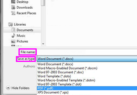 3. For Save as type, choose PDF