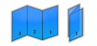 A very popular type of brochure, trifold brochures are made by folding a sheet of paper two times. To fold it, looking at the inside, you fold the right panel inwards and then fold the left panel so that it sits on top of the right panel. This type of brochure has 6 panels, 3 inside panels, and 3 outside panels, that are almost the same size (one of the panels is slightly shorter so it can be folded inside the other two without overlapping).